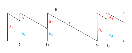 일반적으로, 지정된 순간에 버킷에 b가 포함되어있고 최대 버킷 용량이 B일 경우 버킷에 추가될 수 있는 최대 추가 토큰 수는 Δ=B-b이다. 이 최대 추가 토큰수는 클라이언트가 429 오류 응답을 수신하지 않고 제출할 수 있는 최대 추가 동시 요청 수에 해당한다. 일반적으로 Δ는 시간에 따라 다른다. 값의 범위는 0(버킷이 가득찬 상태, b=B)부터 B(버킷이 비어있는 상태, b=0)까지 이다. 범위는 요청 처리 속도(버킷에서 토큰이 제거되는 속도)와 속도 한도 속도(버킷에 토큰이 추가되는 속도)에 따라 달라진다.