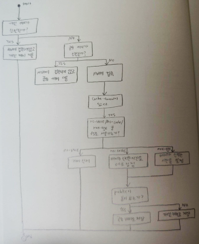 '서버에 접속' 부분에는 앞서 설명한 날짜와 ETag를 이용한 캐시로직이 들어간다. s-maxage는 max-age와 대상이 다를뿐이므로 생략한다.