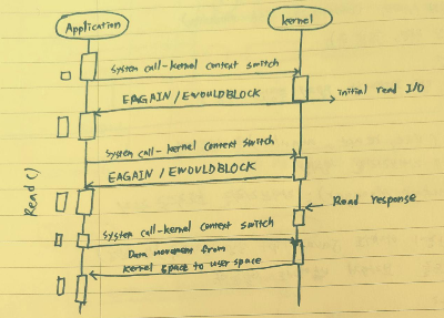 이전 두 I/O의 문제였던 Blocking이나 Polling이 없기때문에 자원을 보다 효율적으로 사용할 수 있다. 이후로는 편의상 Non-Blocking I/O라고 한다.