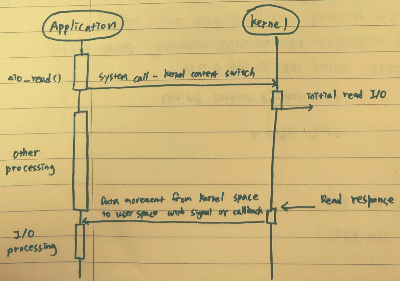 I/O 요청을 한 후 Non-Blocking I/O와 마찬가지로 즉시 리턴된다. 하지만, 데이터 준비가 완료되면 이벤트가 발생하여 알려주거나, 미리 등록해놓은 callback을 통해서 이후 작업이 진행된다.