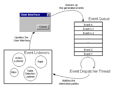 Event-Driven Programming은 프로그램 실행 흐름이 이벤트(ex: 마우스 클릭, 키 누르기 또는 다른 프로그램의 메시지와 같은 사용자 작업)에 의해 결정되는 프로그래밍 패러다임이다. Event가 발생할때 이를 감지하고 적합한 이벤트 핸들러를 사용하여 이벤트를 처리하도록 설계되었다. 순차적으로 진행되는 과거의 프로그래밍 방식과는 달리 유저에 의해 종잡을 수 없이 진행되는 GUI가 발전됨에 따라 Event-Driven 방식은 더욱더 많이 쓰이게 되었다.
