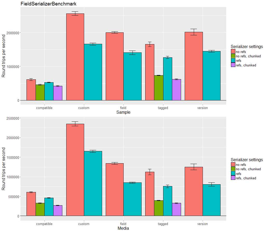 일반적인 입출력은 우수한 성능을 제공한다. 교차 플랫폼 비호환성이 허용된다면, unsafe buffers는 원시타입 배열에서 특히 보다 나은 성능을 보여준다. ByteBufferOutput과 ByteBufferInput은 상대적으로 성능이 떨어지지만, 직렬화의 결과가 ByteBuffer가 되어야하는 상황이라면 허용될만한 수준이다.