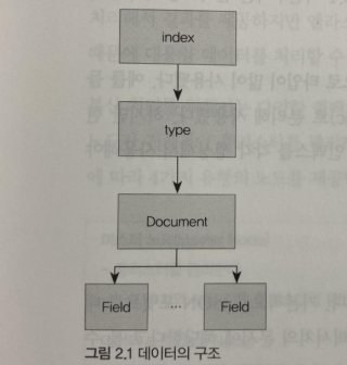 엘라스틱서치의 데이터는 다음과 같이 인덱스, 타입, 문서, 필드 구조로 구성된다.