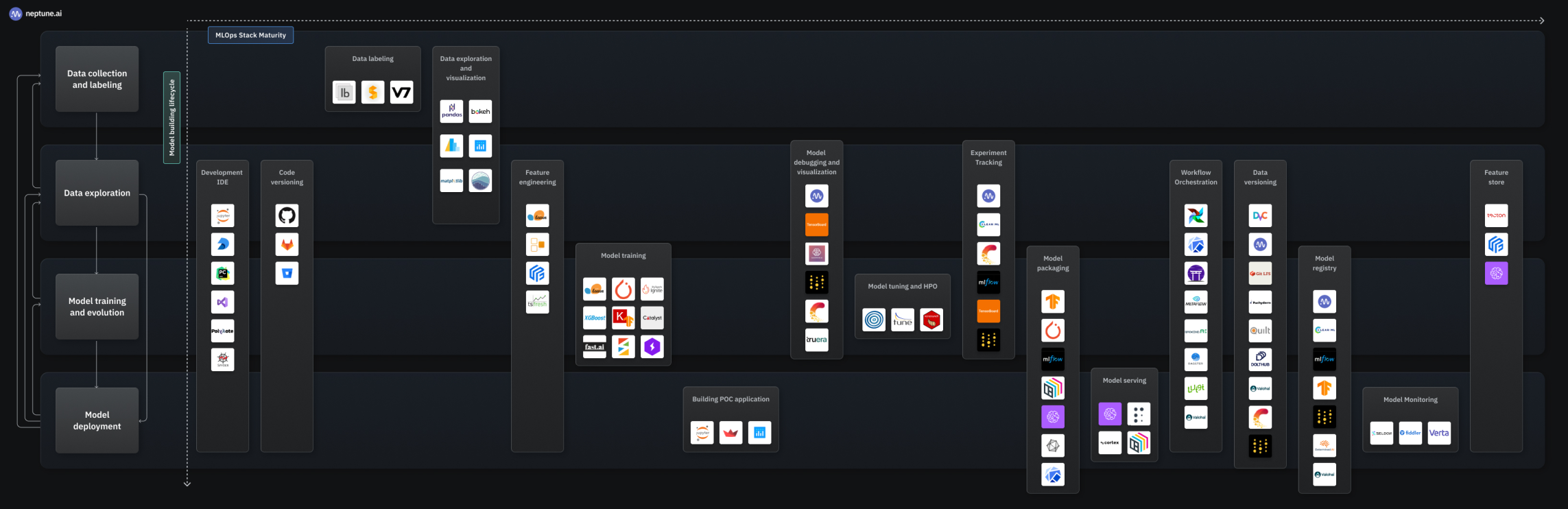 - Experiment management (실험 관리): 여러 실험이 동시에 실행되면 다양한 실행 결과를 효과적으로 추적, 비교 및 분석할 수 잇는 도구와 프로세스를 사용하는 것이 필수적이다. 이는 데이터 기반 의사 결정과 모델 최적화를 촉진한다.