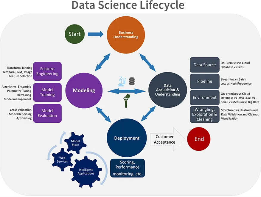 - 하이브리드 팀: 데이터 과학 팀은 개발자(머신러닝 엔지니어)와 데이터를 분석하고 모델과 알고리즘을 개발하는 데이터 과학자 또는 연구자로 구성된다. 후자는 소프트웨어 개발에 경험이 없을 수 있다.